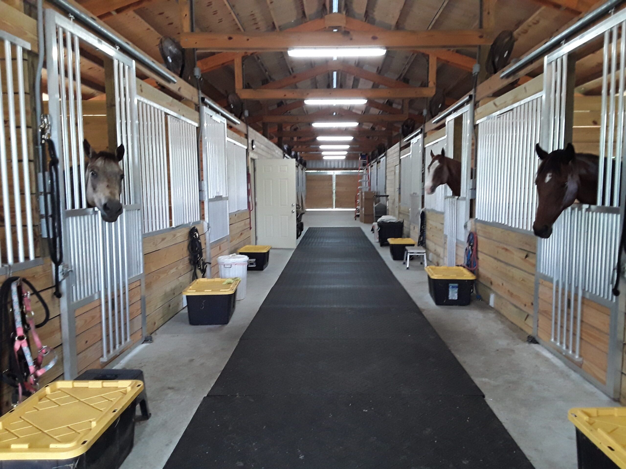 Our facility has 100% backup electrical generation with lightning rods installed on the stable building. Security cameras are also installed throughout the facility. Horse blanket and sheet hooks on pulleys are provided for each stall.