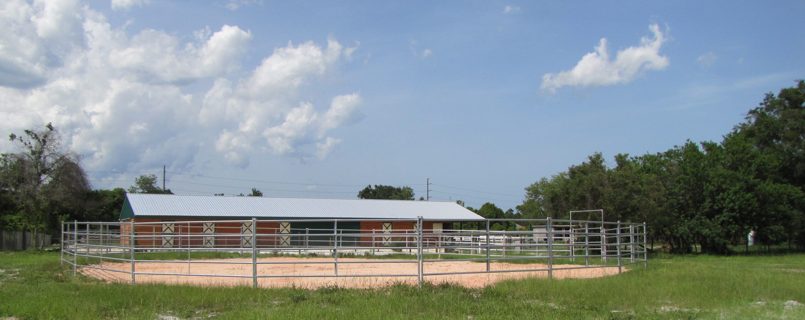 Our facility is located in a gated community and contains 15 state-of-the-art horse stalls, jumping and dressage areas, and an open area for casual riding. The facility itself has its own gated entrance.
