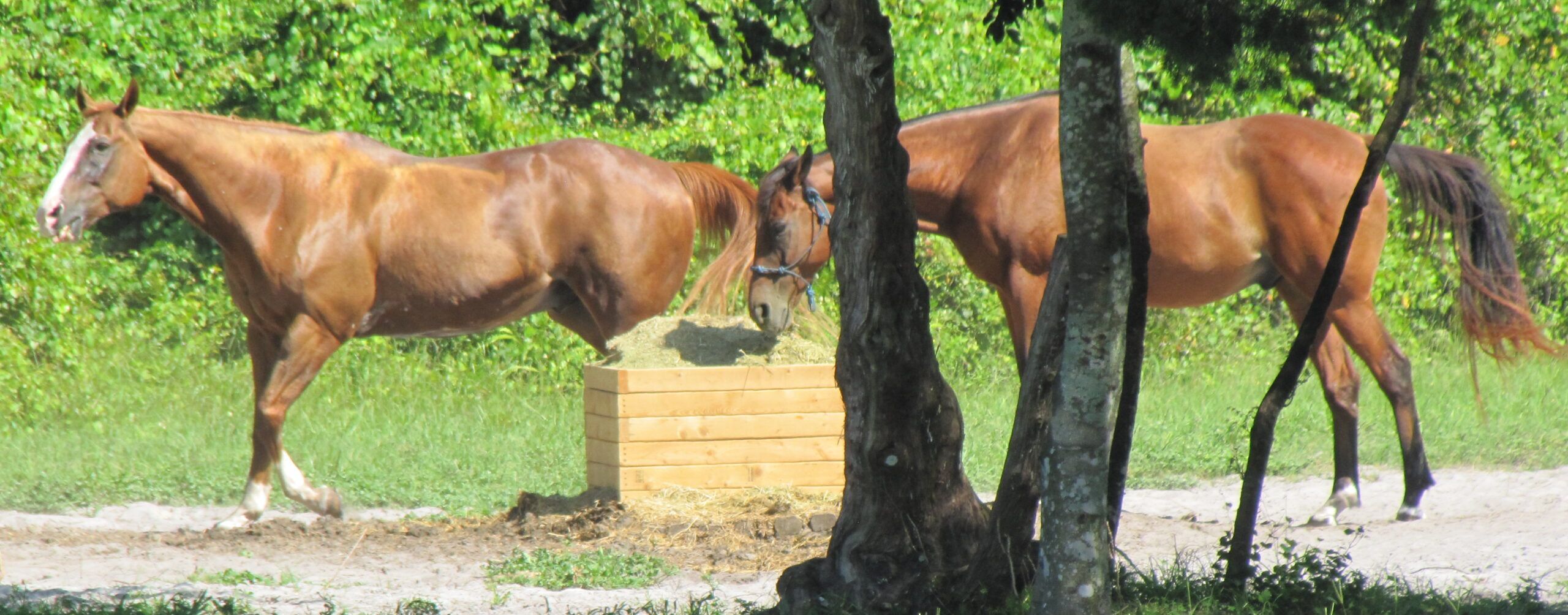 The stables contain an automatic fly control system and an airconditioned tack room. We keep it airy during hot summer days and closed up during windy winter evenings. In the daytime, horses are turned out in spacious paddocks. At night, they are kept in beautifully designed aluminum and wood stalls. Each stall has its own fan, lighting, and automatic water feeders.