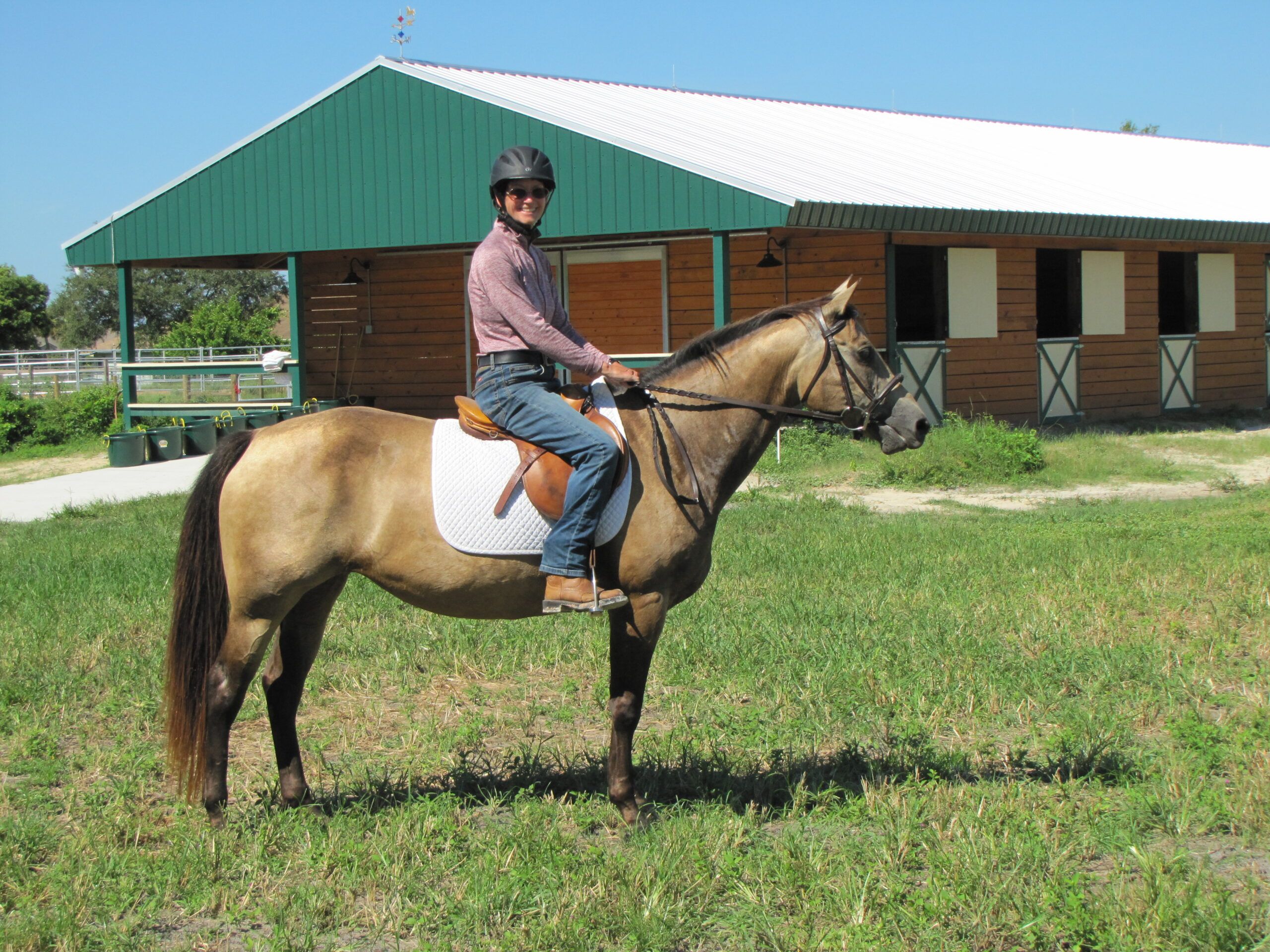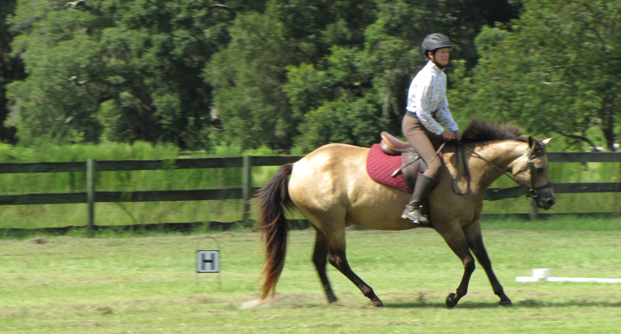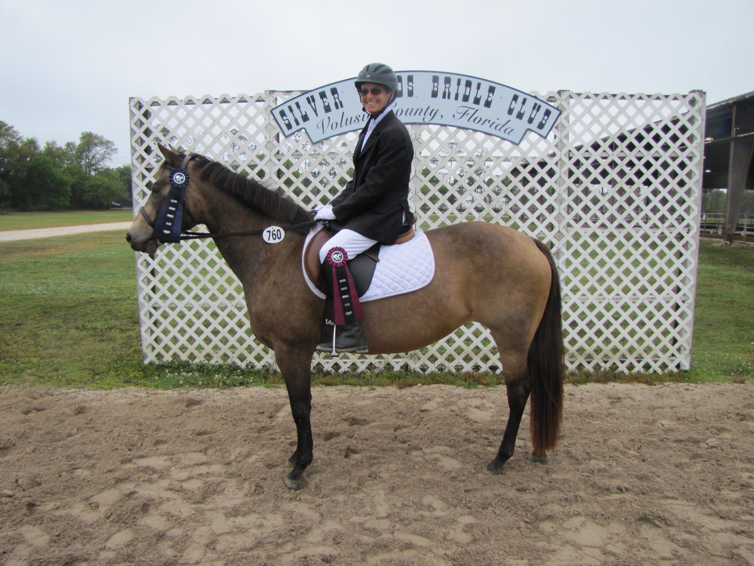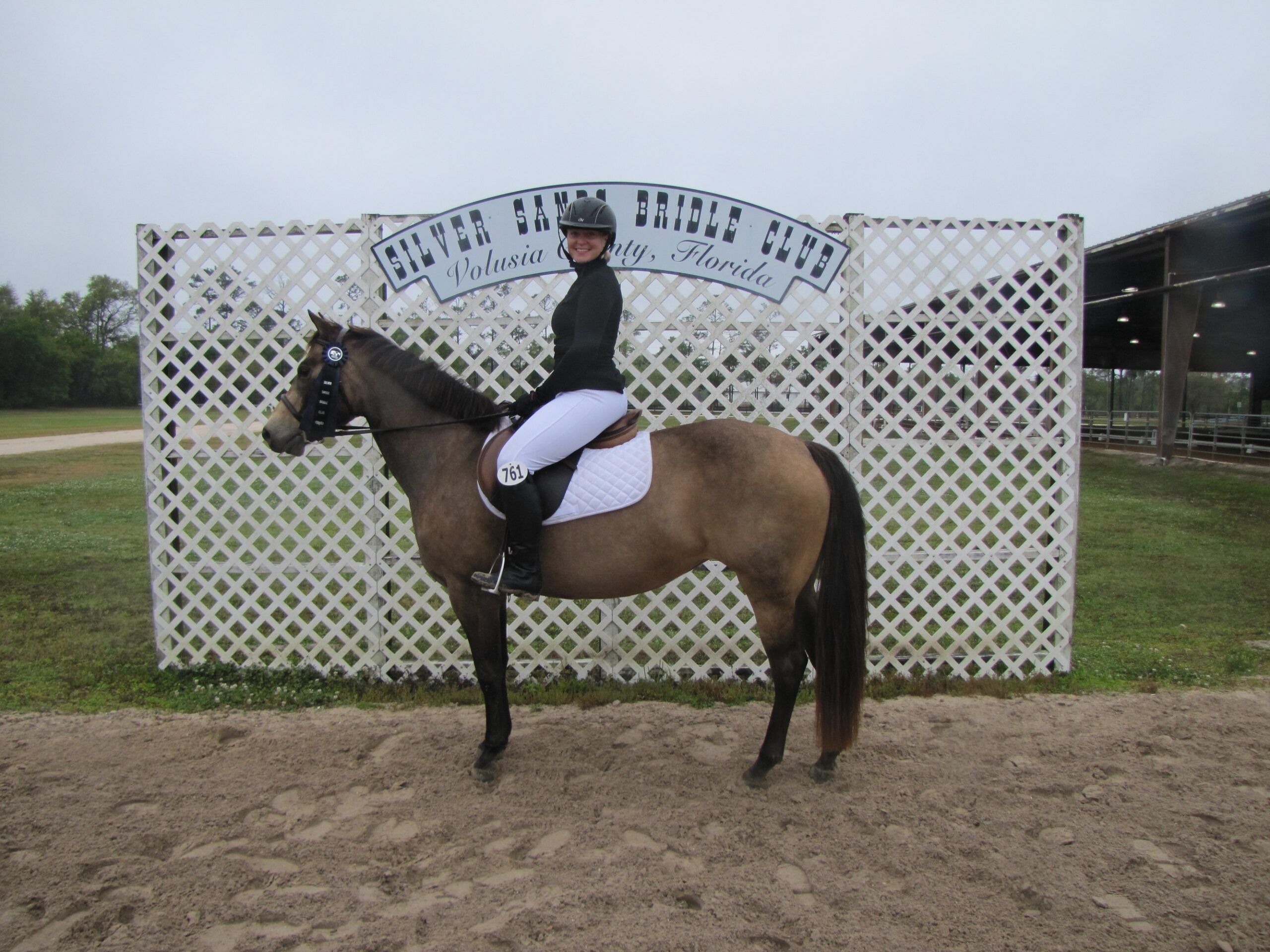 Rider Mari Lutz and Plimsoll Downs Desert Moon – first day at Silver Sands Bridle Club December Event