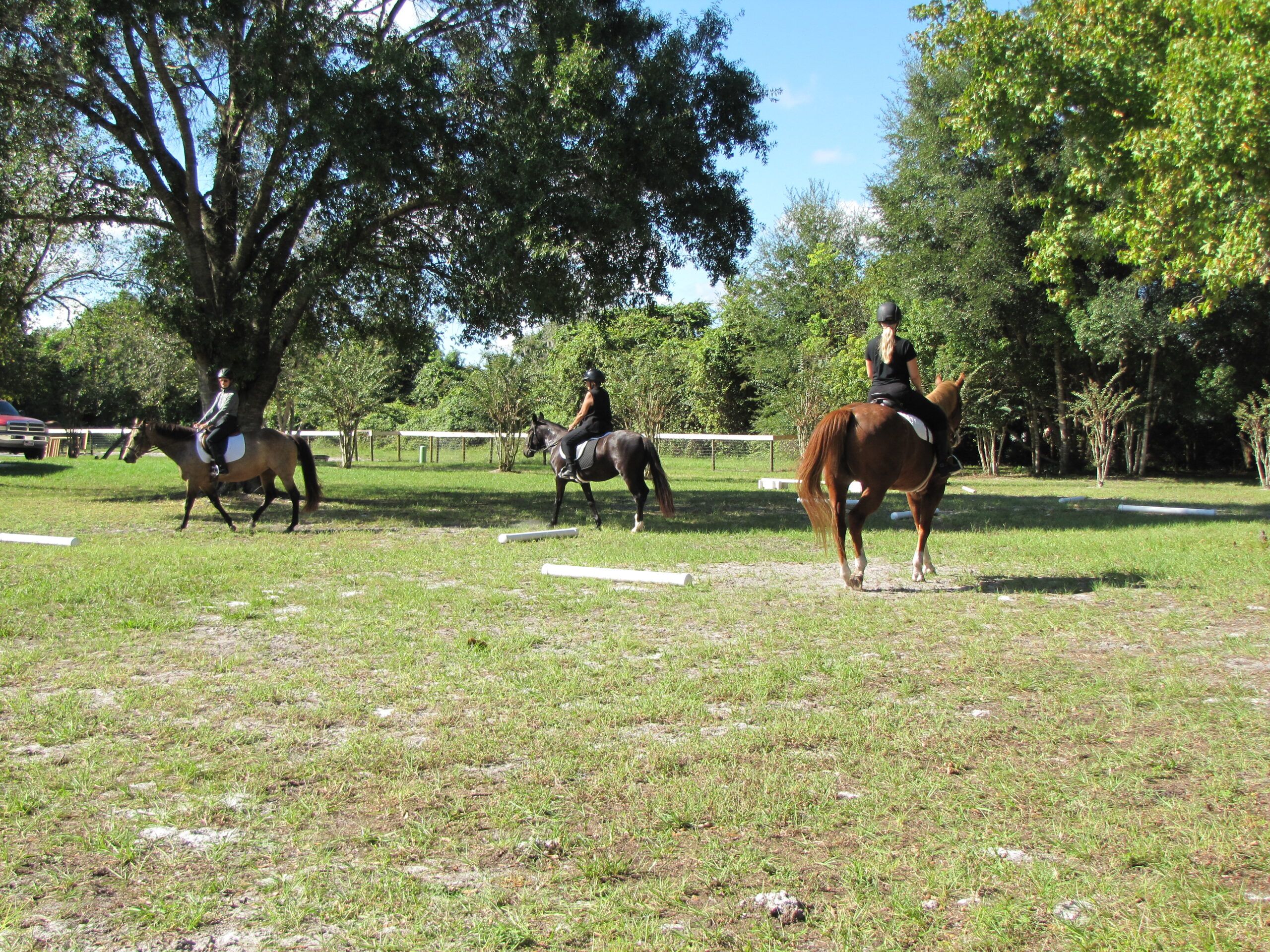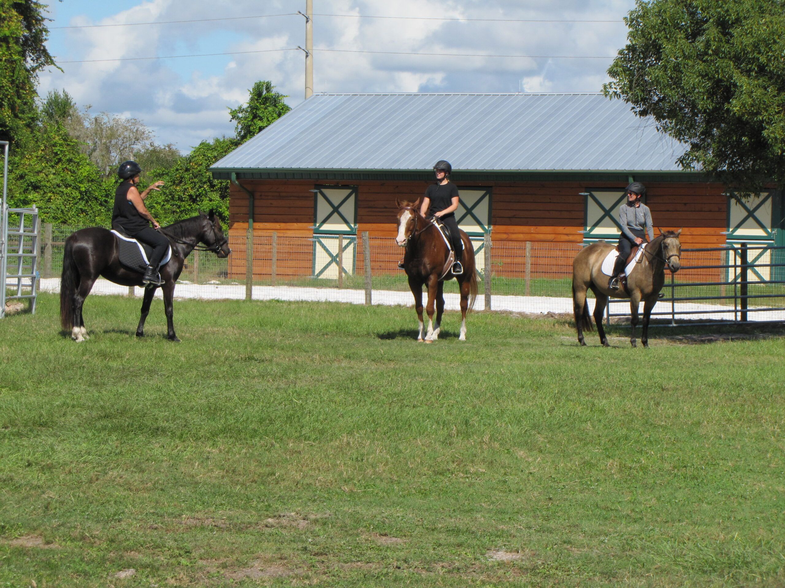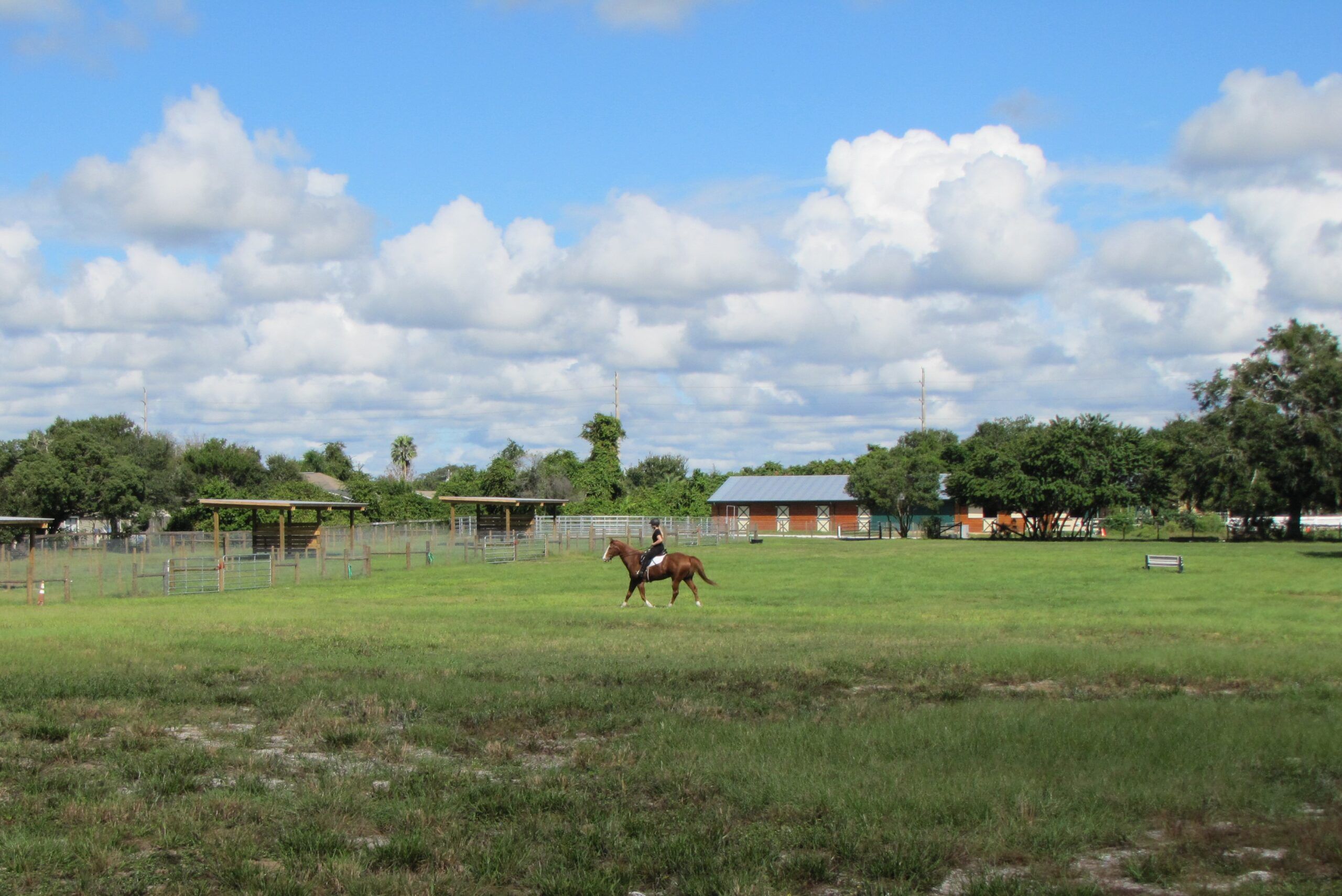 Our facility is located in a gated community and contains 15 state-of-the-art horse stalls, jumping and dressage areas, and an open area for casual riding.  The facility itself has its own gated entrance.