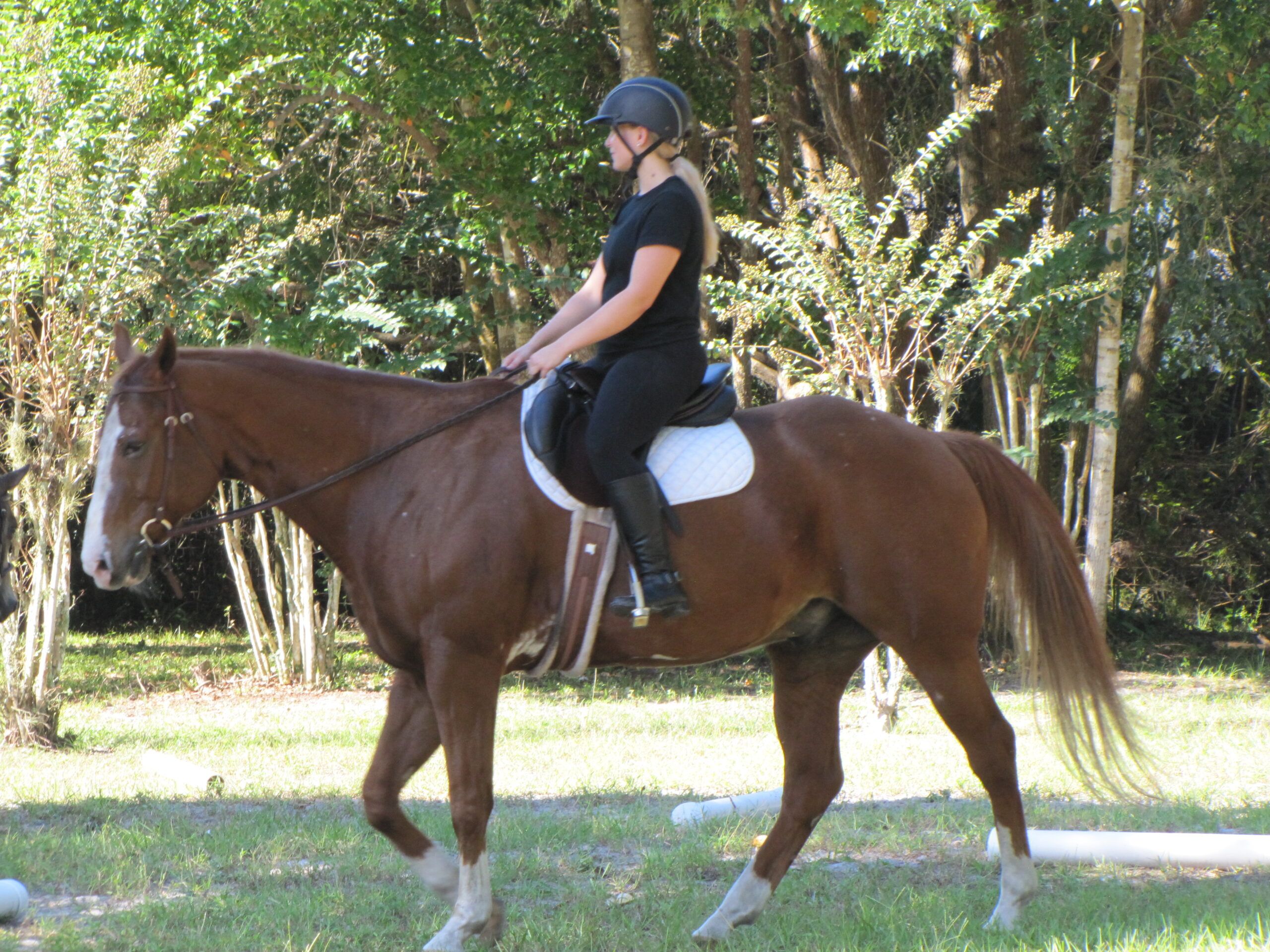 R.T. Sage, aka Artie, in his role as a school horse extraordinaire, tutors a young rider in the basics.